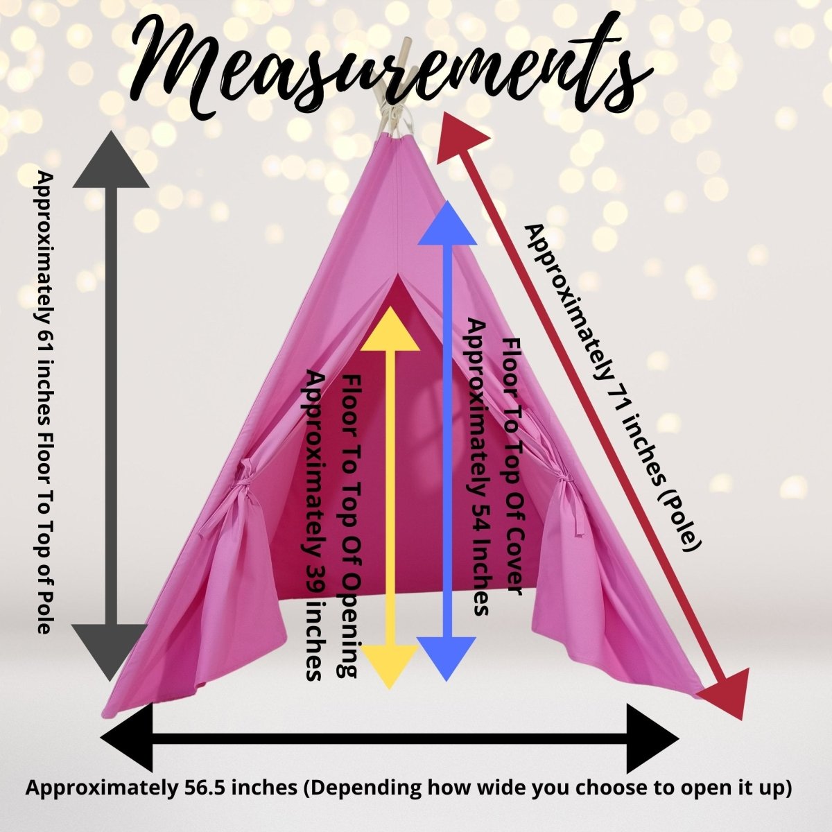 Quality Teepee Tents: Each white glamping teepee tent comes with a coordinating carry bag and features window and pockets. Decorate each tent with the provided blue fairy lights for a magical ambiance. ⛺ðŸŒ?(Please note I am no longer adding pom trim to the teepee as seen in the photo)