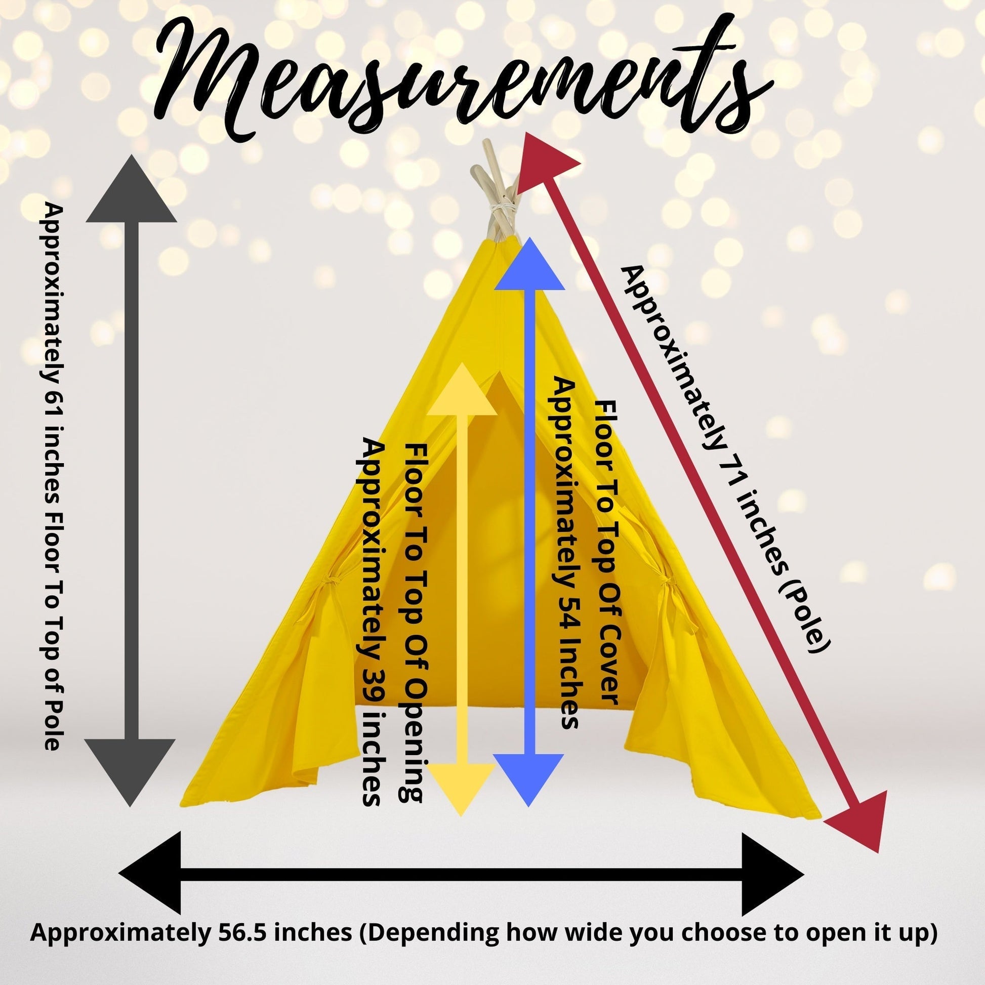Quality Teepee Tent: The teepee tent is hand-crafted with premium wood poles and a 100% cotton canvas cover. It features a window and two spacious pockets for storing toys. It's perfect for indoor play and rugged enough for outdoor adventures. The dimensions are approximately 71x56x61 inches, with a door width of around 56.5 inches. It's spacious enough for two children, making it perfect for playdates! ⛺ðŸ‘?/p>